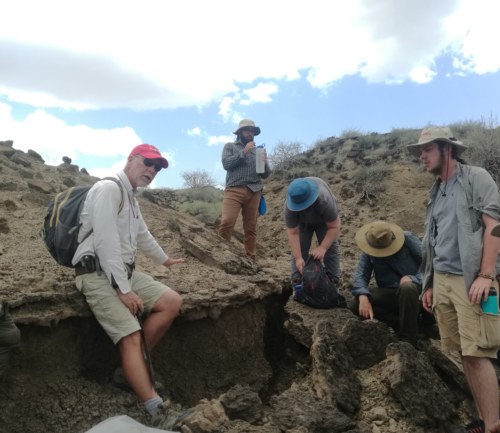 Dr. Feibel indicates eroded surface in the strata. Photo credit: Medina Lubisia.