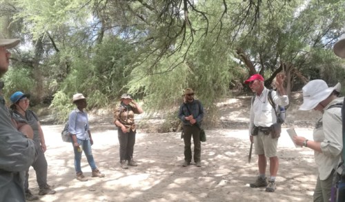 Dr. Feibel discusses sediment deposition processes in the Laga Bura Hasuma. Photo credit: Medina Lubisia.