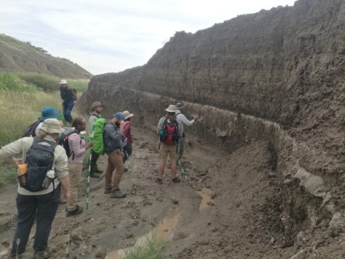 The “badlands” of the KBS Member awaited us in Area 103 later that afternoon. To understand the changing facies in the paleoenvironments, Dr. Feibel led the students in examining the lacustrine deposits of the Lorenyang Lake. An interesting part of the hike was the Burgi Unconformity. An unconformity represents a gap in the geological record, as a result of interruption during sediments deposition. The tilting of the quadrant of the basin caused by Hamar Uplift in the northeast, resulted in the formation of an angular disconformity, that later graded into an erosional disconformity in the Burgi Member.