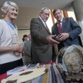 Stony Brook University President Samuel L. Stanley Jr., MD, (right) with Professors Richard and Meave Leakey, discussing fossils recovered at the Turkana Basin Institute.
