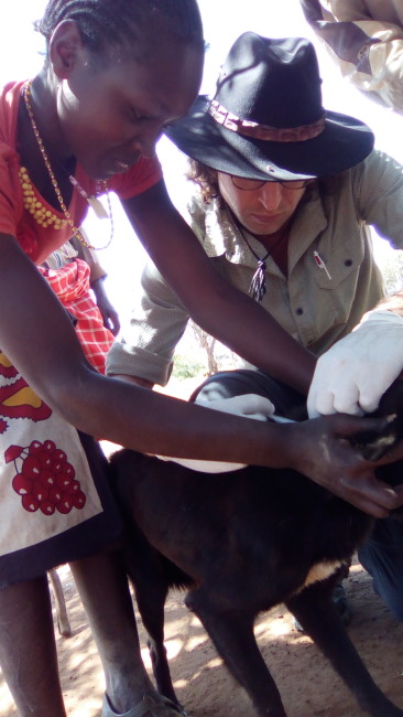 Jon and a young Masai girl helping with the Laikipia Rabies Vaccination Campaign.