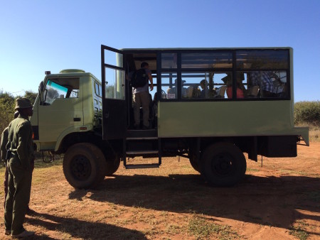 Students climb into the lorry ready for their first class in the field!
