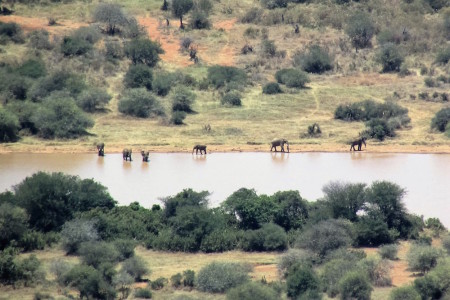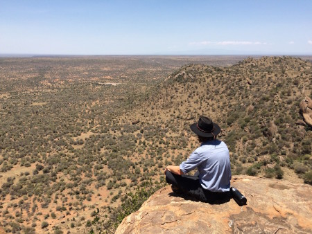 Jon searching for elephants at waterholes in the distance