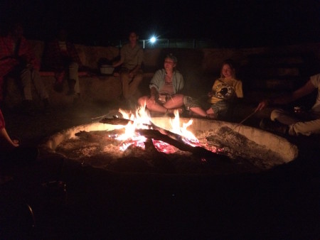 Esther, Tobias, Carla, Morgan and Emily hanging out at the fire pit after dinner.