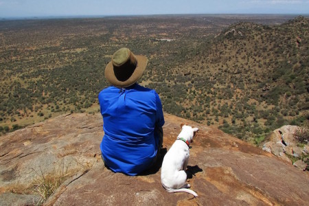 Dr. Martins and his trusty sidekick, Barabara, look out over Mpala.