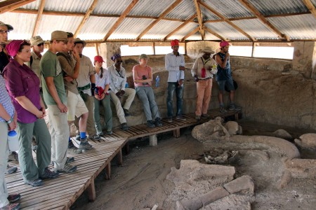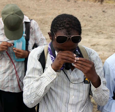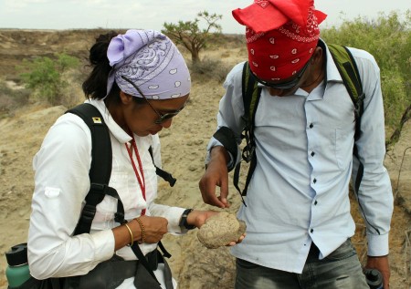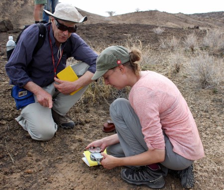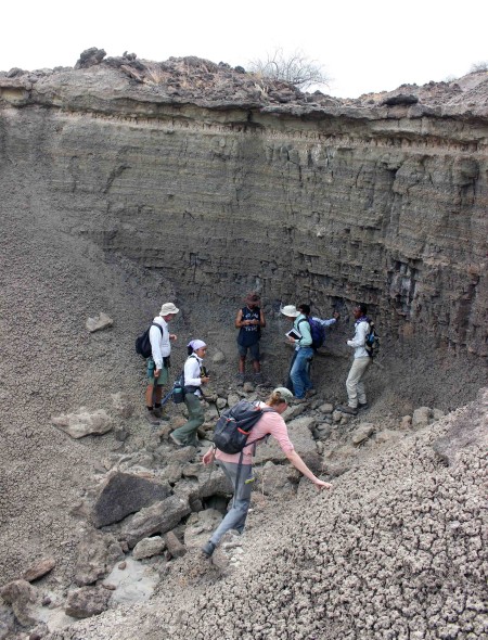 Nearing the end of the Geology module, we all set out for an overnight trip to the famous Koobi Fora camp area. The Koobi Fora area is historically significant for human origins research, most notably a hot spot for this discipline since the beginning of Drs. Richard and Meave Leakey’s research in the 1960’s and 70’s. Since that time, Koobi Fora has attracted researchers from all over the world from a multitude of disciplines. Many of the fossil hominin finds in this area have revolutionized our understanding of human origins. Geologists, working closely with palaeoanthropologists, have also played an enormous role in this research, creating a timeline of changing environments through time. Dr. Feibel has conducted research in this area since graduate school and so gave us an unforgettable tour of the geology in the region.