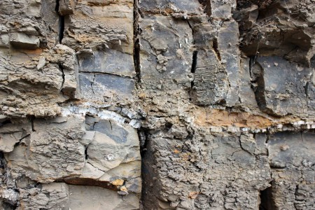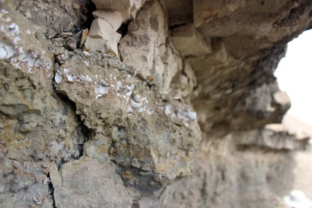 A sandstone deposit full of ancient shells. These organisms lived in the lake a long time ago when the lake levels were higher.