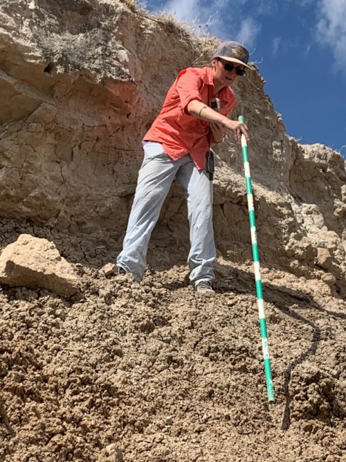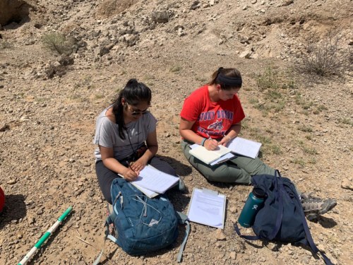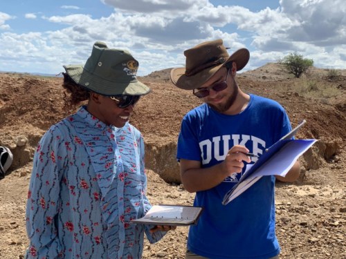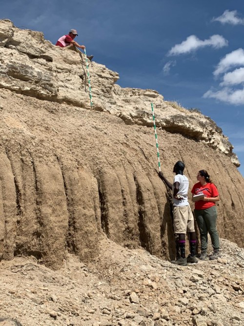 Tymofii and Margaret discussing their slope profile dip and strike.