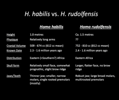 Notable differences between H. habilis and H. rudolfensis.