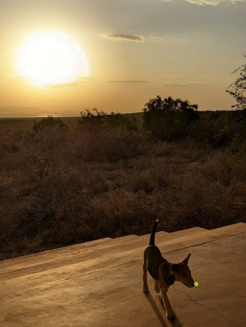 Our beloved companion Azimio and the spectacular sunset from TBI Ileret