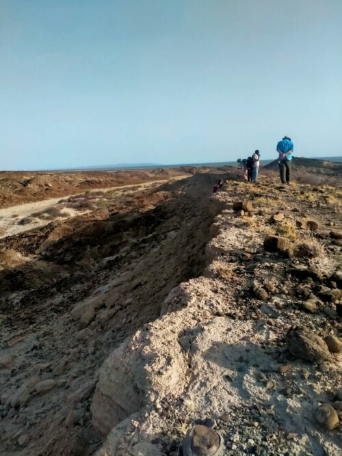 Searching the Koobi Fora Fomation in Area 102. Lake Turkana and North Island pictured in the background.