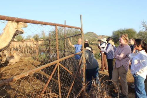 On Friday, the field school team woke up early and drove to Mount. Kenya – the second highest peak in Africa after Tanzania’s Mt. Kilimanjaro – and were led by Dr. Martins on a hike up the mountain. Despite what the students might tell you, we didn’t get close to the summit, but it was still pretty chilly! Dr Martins showed the students some of the endemic plant species on the mountain’s slopes. In the afternoon, the students visited the Mount Kenya Wildlife Conservancy in Nanyuki, where you were able to get up close to cheetah, lion, and even a 150-year-old giant tortoise called Speedy.