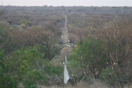 Digging a straight line through thick commiphora bush is no wasy task and several attempts to do this were made using a variety of techniques, including standing on hill tops flying bedsheets on metal poles, trying to follow GPS tracks drawn from google earth among others.