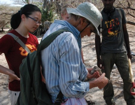 The third module on Human Evolution started early. Professor Fred Grine of Stony Brook University arrived Saturday and took students on an excursion to Lake Turkana. The Turkana Basin has revealed a wealth of human fossils, and is thus also known as “the cradle of human kind”. After a short truck ride students arrived at the breezy lake and began visual searches for human and animal fossils with Drs Meave Leakey and Fred Grine. The search paid off: a 300,000 year old hippo bone was found!