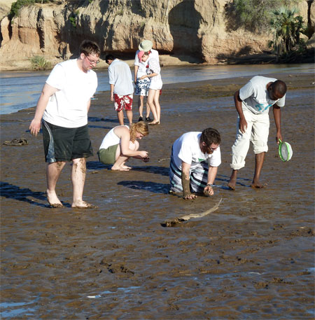 We focused on different parts of the river, but as the Turkwel is currently quite low as it is the middle of the dry season, most of our sampling was done on the mud-flats.While this habitat may not seem that exciting, it actually is a very important component of aquatic life. Films of algae feed and harbor innumerable insect larvae and specialised creatures that make a living the the rich, wet mud.