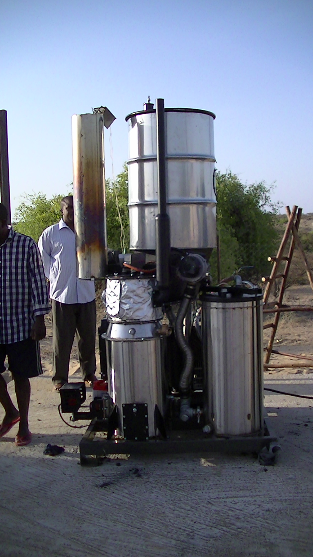 At TBI’s Turkwel facility, on the west side of Lake Turkana, we’ve just installed a gasifier. This is a machine which turns biomass into natural gas, which is then used in a generator to make electricity. The technology isn’t particularly new – it was widely used in the Second World War instead of petroleum based fuels for cars – but its use for electricity generation is still being developed. The machine is from All Power Labs in the US and we worked with Yoav Palatnik from Eco-Power Africa to set it up. Yoav trained 3 members of the TBI staff how to run and maintain the machine.