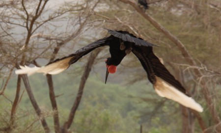 Abbyssinian ground hornbills in camp. This pair loves to explore the empty cottages. You can't tell from the image, but they're turkey-sized animals. The TBI grounds are a birders paradise.