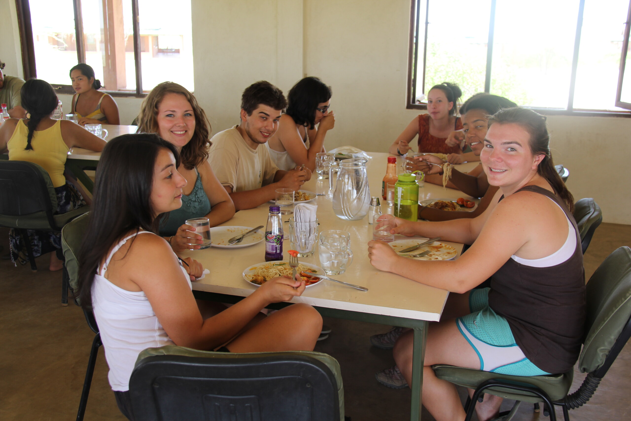 The mess hall is at the far end of campus and it overlooks a series of Plio-Pleistocene badlands that brilliantly reflect the sunrise each morning and showcase the sunset. The field school students have their own tables at one end of the mess where coffee and tea are always ready to be brewed or mixed. One popular question asked by people who learn you’re going to be living in the northern deserts of Kenya is, “What will you eat?” We’ve learned the answer: you eat well.