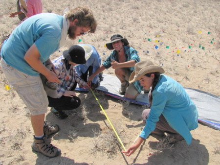 After taking all the points, a small group of students set off to outline the East-West axis of the site from which the students would mark out their excavation units the next day.