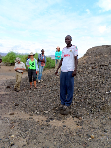 Francis shows us his best Turkana Boy impression as he stands on the spot where the skull was found in 1984