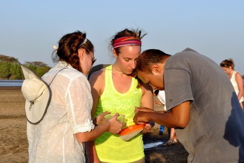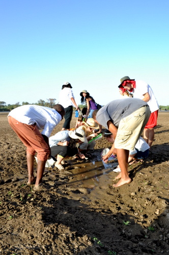 After a lecture on malaria, mosquitoes, and other common diseases and their carriers, the students headed down to the river for a practical on the identification of mosquito larvae and pupae. We were joined by a National Geographic film crew and the students were very excited.
