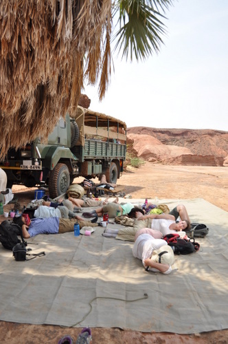 Trekking in Lothagam is great fun, but no easy task as it involves a lot of scrambling up and down steep slopes. All the students are experts in embodying the spirit of the mountain goat in these situations, but this time we had one minor casualty – Janina pulled a muscle in her leg as she was scrambling up a hill. Help was very close at hand, though, and she got back to camp safely in no time.
