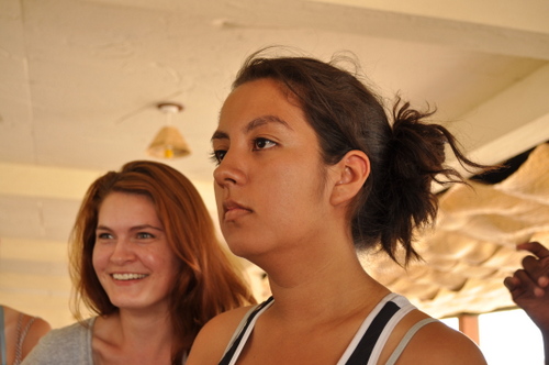 The first person to break was Kailie from *Akreísma*, but her powers of distracting were so good that she managed to drive the other teams out of the game, leaving Robyn and Carolina in eye-to-eye staring combat. The minutes were tense; and then all it took was one word for Robyn to lose here concentration and laugh. Once again *Akreísma* take the gold and the lead.