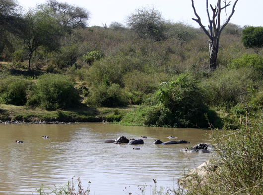 Nearby a family of hippos were frolicking in the river after their night out grazing on riverine plants. Students learned about the importance of these animals in shaping the physical structure and ecology of the river and riverine habitats: one of the key components are the nutrients from the more-than-abundant hippo dung that are essential for the algae, insect and fish communities in these habitats.