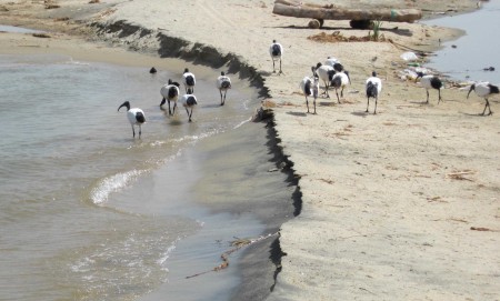 As mentioned in the previous post and in comparison to the last 5 – 10 years, Lake Turkana is experiencing higher lake levels. Check out the drowned palm trees in the pic below in which the shoreline here has advanced about ¾ of a kilometer!