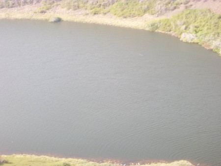 While hiking on the island, we made a stop at another volcanic crater lake. This fresh water body is a breeding site for crocodiles and is therefore called Crocodile Lake. Unfortunately (or fortunately depending on your view), there were not many crocodiles and many were too far to see much detail without binoculars. Can you see the two crocodiles in the second lake picture below??