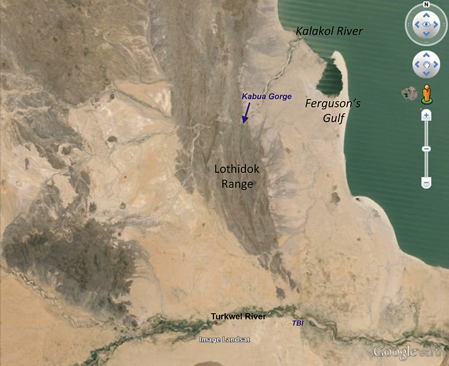 The Lothidok Range is made up of Late Oligocene to Middle Miocene volcanics and sedimentary deposits where a number of faults have shaped the relief across this area. Kabua Gorge formed within the range as a result of the Kalakol River eroding across in its path towards base level, presently Lake Turkana.