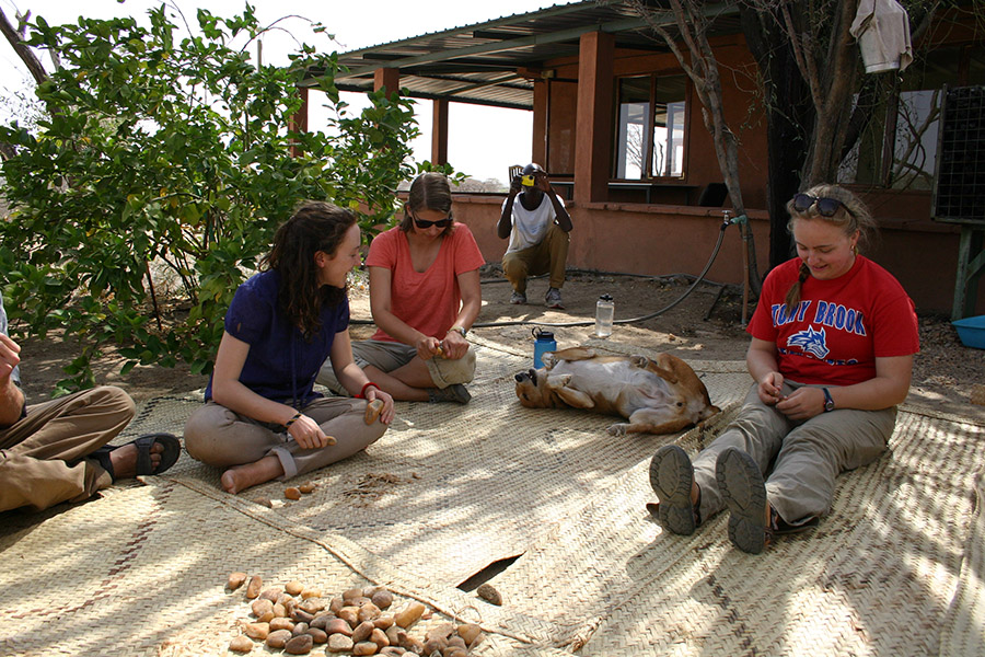 Below are a couple pictures of students putting their stone tools to use in the end of module Goat Roast.