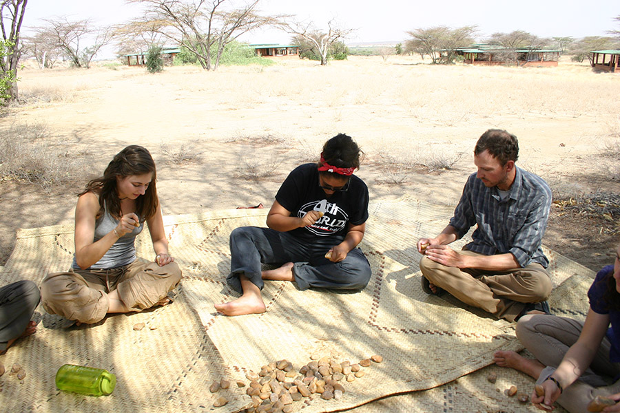 Back at TBI-Turkwel, students worked on knapping. They began knapping quartz then moved on to material they collected near Nariokotome.