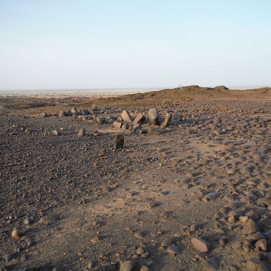 When aridity returned during the Middle Holocene (end of the AHP), major civilizations began to come about. Humans’ transitioned from the early nomadic cultures to a sedentary life around a reliable source of food and water such as the Tigris-Euphrates, Nile, Indus, and Yellow Rivers. But in the Turkana Basin, permanent settlements did not exist till much more recent times. Unlike cultures that started agriculture before having cattle, work by Dr. Elisabeth Hildebrand and others indicate domesticated animals occurred in the Turkana Basin before cultivated crops during the Middle Holocene. Communities with domestic livestock spread from the Nile region to south as new tsetse-free browsing areas were formed. Around the same time, several cementaries with stone pillars were erected. This may indicate the same communities with cattle also commemorated the deceased by erecting large 800 kg stone monuments.