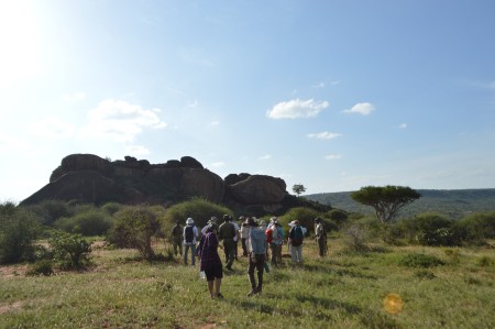 On our walk back to camp, we stopped to watch the giraffes. Photo by Martha N. Mutiso.