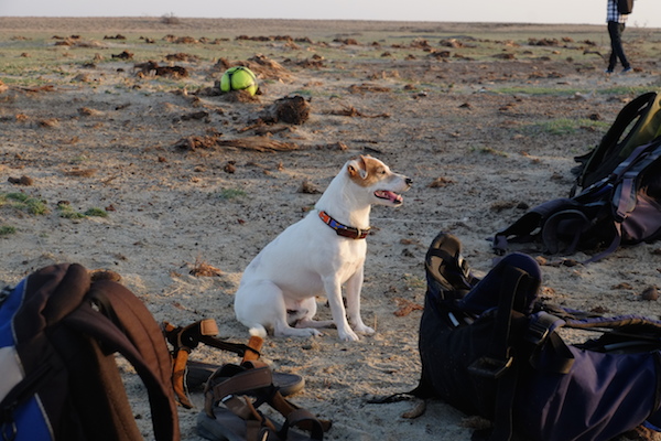 Barabara guards the students’ bags on the lake shore! Photo credit Deming Yang.