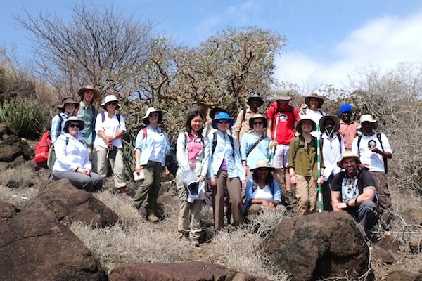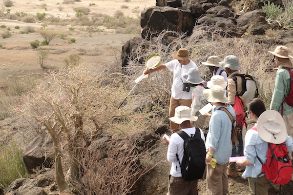 Students pause on their hike in Sibiloi to listen to Professor Dino Martins. Photo credit Deming Yang.