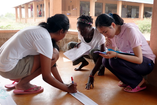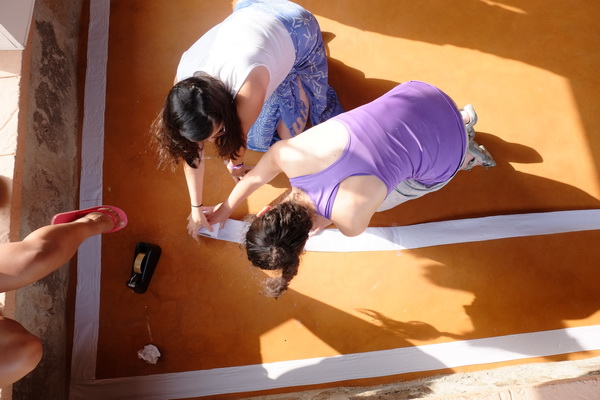 Tom, Maria and Izzy counting the squares of their TP timeline