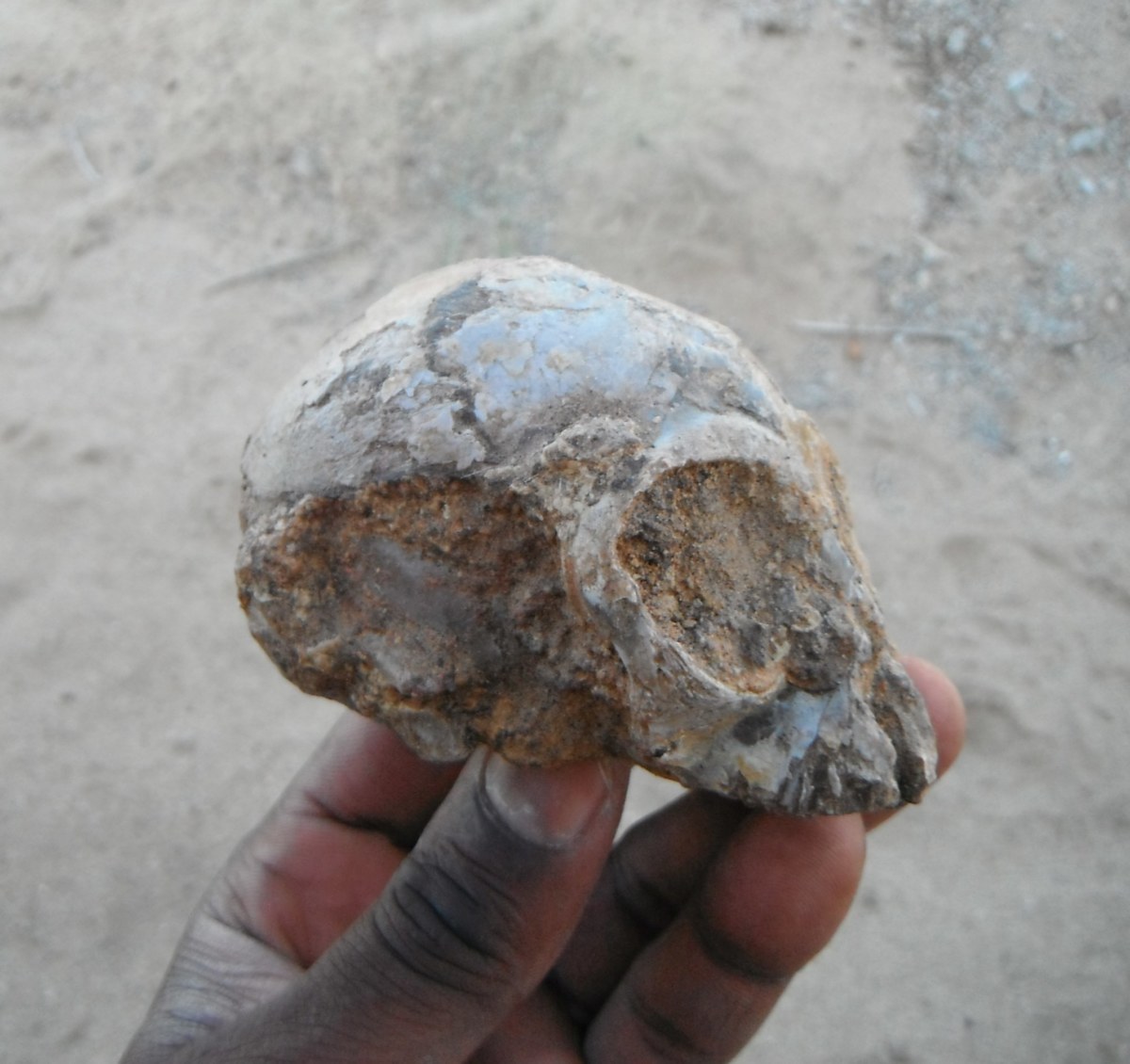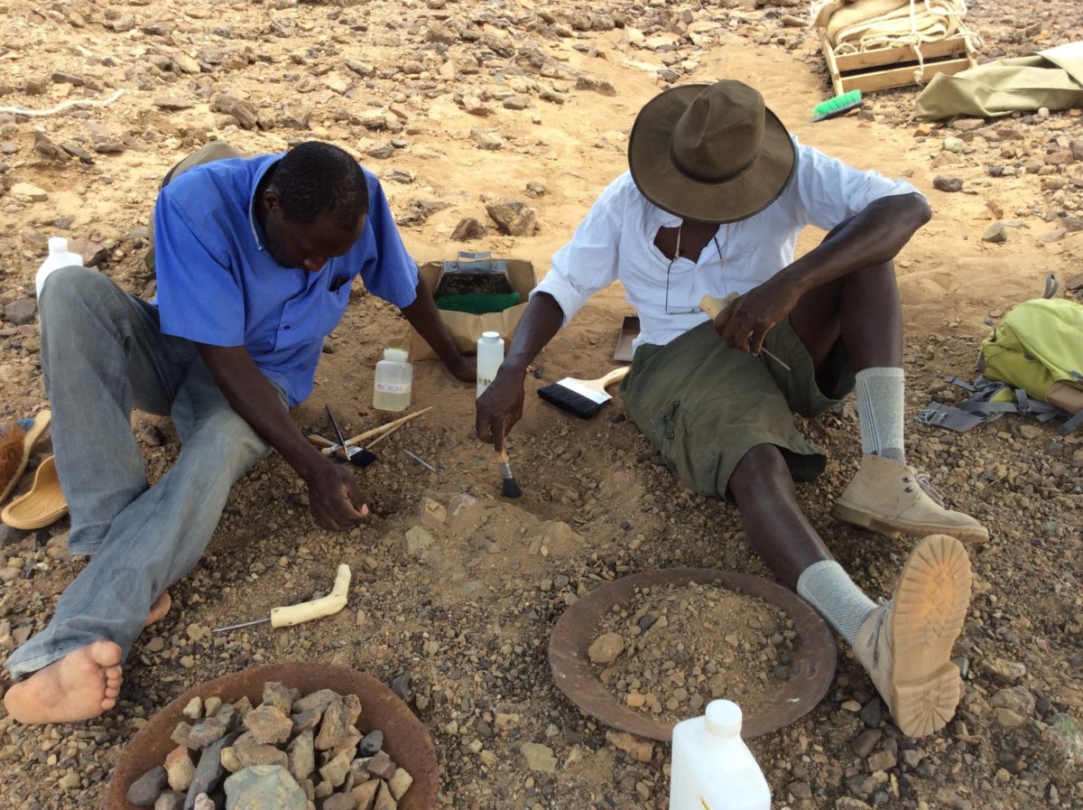 Alesi partially excavated after careful removal of loose sand and rocks with dental picks and brushes. © Isaiah Nengo.