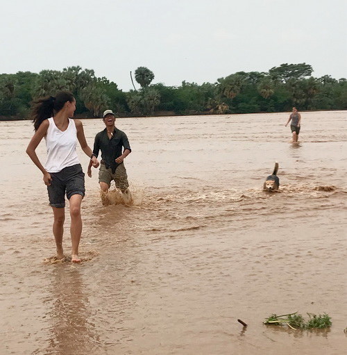 Regina, Rohan, Gill and Tom having fun in the river on our first day in Turkwel.(Photo: T.A. Rosie Bryson)