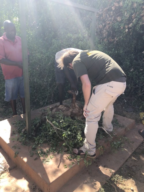 Harrison helping with the goat butchery. (Photo Credit: Jessica Manson)