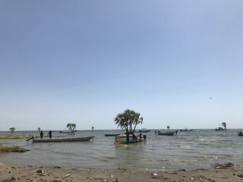 After Flamingo Lake, we went over to the trailhead for a small hike to another lake, and ate lunch. After lunch, we hiked up to the second lake, called Crocodile Lake, because it holds one of the world’s largest breeding grounds for Nile Crocodiles. We looked from a safe distance to see if we could spot some crocodiles, but there were none in sight that day. It was still an interesting view, the lush flora being different from most of the things we had seen in Turkana so far. After this, we hiked back to the boats and had a smooth ride back to Kalokol, and came back to TBI for dinner.