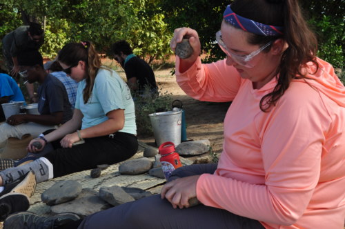 Students busy knapping.