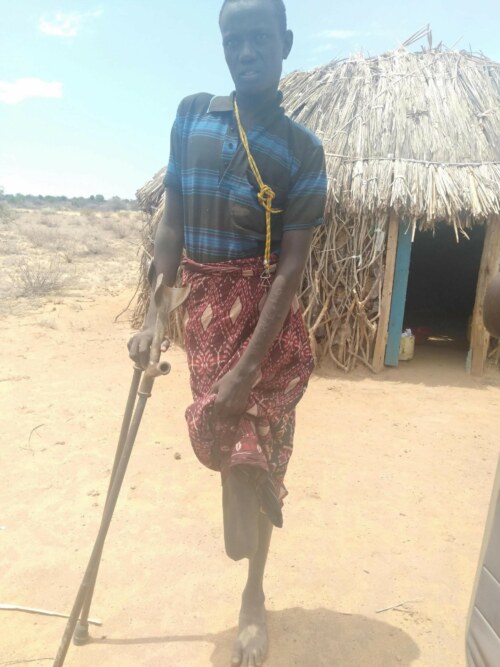 James Alkerech at the village in Ileret after his injury and amputation