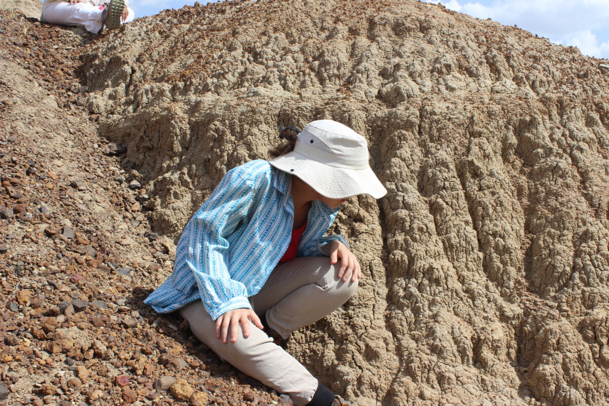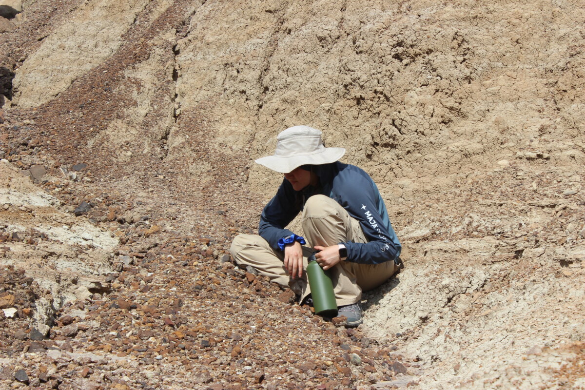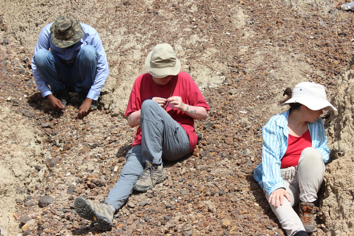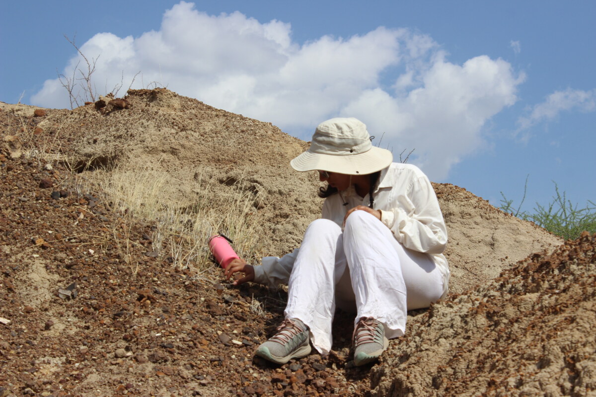 The following morning was another early rise, and we were headed to the fossil site at 7 am to get ahead of the desert heat for our “hill crawl” for fossils. Upon arrival, we spread out in a line at the base of a relatively flat hill and began searching for fossils with our eyes close to the ground to not miss anything important like small fossilized teeth or small primate bones. By lunch break, the group had collectively found a number of amazing specimens including a complete monkey molar, a small primate metapodial, part of a monkey tibia, and many more! We headed back to camp with plans to return to catalog the remaining fossils in the afternoon, excited to continue with our work at the site. However, Mother Nature had different plans for us!