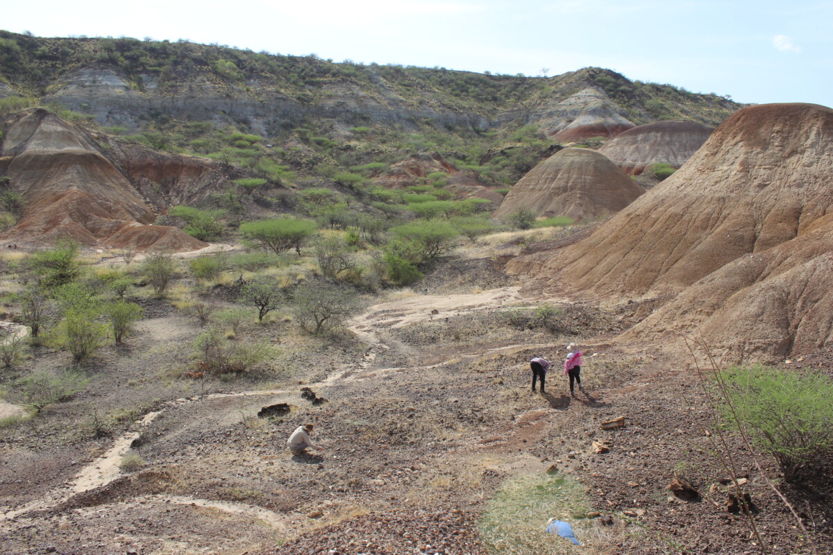With our campsite at the center of the Buluk locality, we were conveniently within walking distance of every field site and fossil-bearing spot on our itinerary. In the afternoon we had our first hands-on experience with paleontological fieldwork at a site called Dead Elephant’s Valley, where our goal was to become familiar with identifying fossil bones and teeth outside of the classroom. The students and staff found a wide assortment of crocodile teeth and cranial bones, pieces of tusk, and many elephant fossil remains! After a couple of short sightseeing stops that included a view over the valley and a fossilized tree from which a young, living tree was sprouting, we returned to camp and, after a delicious dinner courtesy of Head Chef Edwin, we turned in for the night.