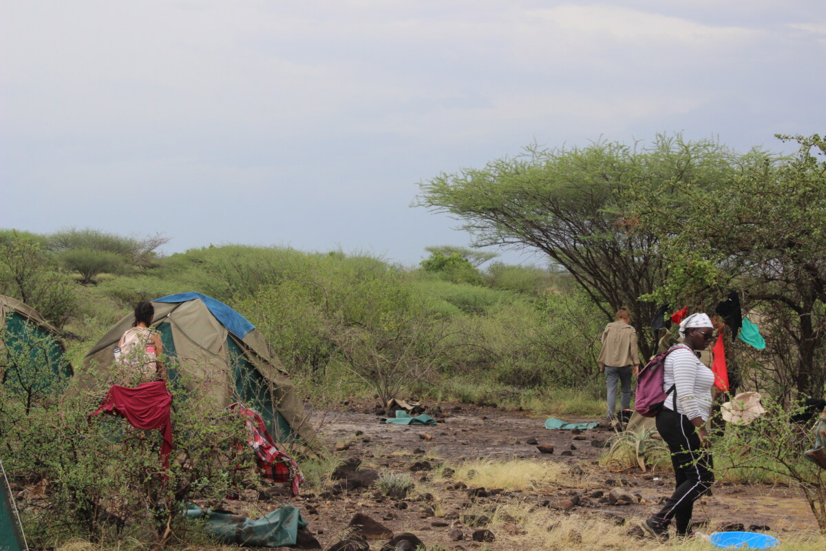 As we prepared to trek back to our flagged fossils, bellies full from lunch and water bottles filled, an abrupt downpour and heavy winds drove the students and staff for the cover of the vehicles; we soon found our tents and personal items soaked from the unexpected weather. We didn’t let the events of the afternoon get to us; after hanging our things out to dry and rearranging the tents where necessary, we spent the rest of the day relaxing and playing games together, as well as celebrating the 21st birthday of Alisa, one of our fellow students and our now close friend, with a nice fire and chocolate cake prepared at the camp by amazing chef Edwin and his fantastic team!
