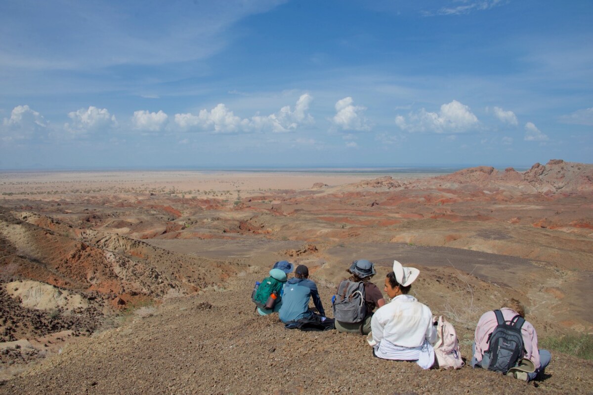 That evening at sundown, the students visited the nearby monument at the findspot of one of the world’s best known hominin fossils, the 1.5-million-year-old Nariokotome (or Turkana) Boy. On the long drive back to TBI Turkwel, the students did some survey for artefacts at the site of 1.7-million-year-old site of Kokiselei 2. They were also fortunate to get a unique tour of some much more recent archaeological remains at the Kalokol Pillar Site from Dr H, who is one of the world’s experts in this time period. This monumental site dates to the last few thousand years, and was evidently a very important place for the some of the earliest pastoralist communities that inhabited the Turkana Basin, since they not only systematically transported heavy basalt pillars to the site, but also, buried their dead there.