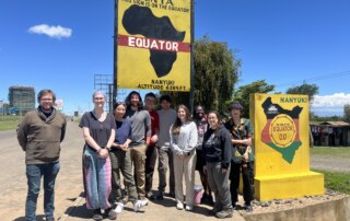 The entire group poses for a photo at the equator, near the town of Nanyuki